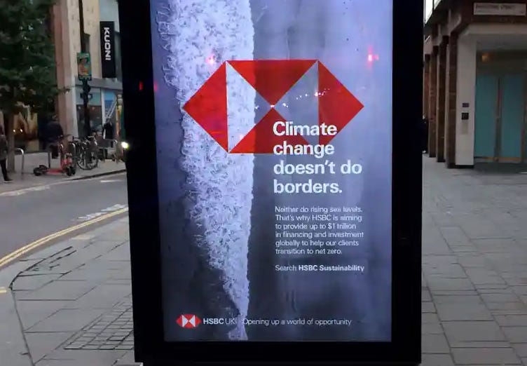 “HSBC has suffered a fresh blow to its green credentials after the UK advertising watchdog banned a series of misleading adverts and said any future campaigns must disclose the bank’s contribution to the climate crisis.”